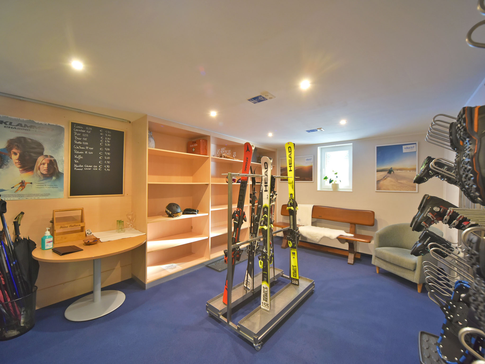 Unsere Rezeption ist verbunden mit einer gemütlichen Lounge, wo Sie weitere Aktivitäten in und um Bad Kleinkirchheim planen können. Weiters bieten wir Ihnen Aufenthaltsräume mit Kühlschrank und einen abschließbaren Mehrzweckraum an. Hier können Sie ihre Sportgeräte (Winter- bzw. Wanderausrüstung, Fahrräder, etc) entsprechend trocknen und sicher verwahren. Lademöglichkeiten für E-Bikes sind ebenfalls vorhanden. Für trockene Füße stehen mehrere Schuhtrockner zur Verfügung. Wir verfügen über genügend Parkplätze und bieten Ihnen auch Unterstellmöglichkeiten für Ihre Motorräder. Oder entspannen Sie sich in unserem geschützten Garten oder auf unserer Sonnenterrasse.